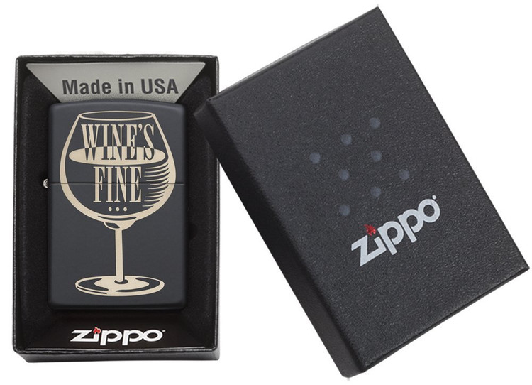 فندک زیپو کد 29611. فندک زیپو مدل: Zippo Wine’s Fine Design Black Matte 29611 با بدنه مشکی مات و نقش چاپی جام با گرافیکی چشمگیر. از محصولات سال 2018 زیپو که با مغزی نقره ایی عرضه شده است و دارای گارانتی تعمیر همیشگی خواهد بود. فندک زیپو کد 29611 دارای بدنه مشکی مات است. بدنه مات در مقایسه با نمونه های پولیش خورده طرفداران خود را دارند و مانع از انعکاس نور میشوند و همچنین در مقابل خط و خش نیز مقاومت بیشتری دارند.